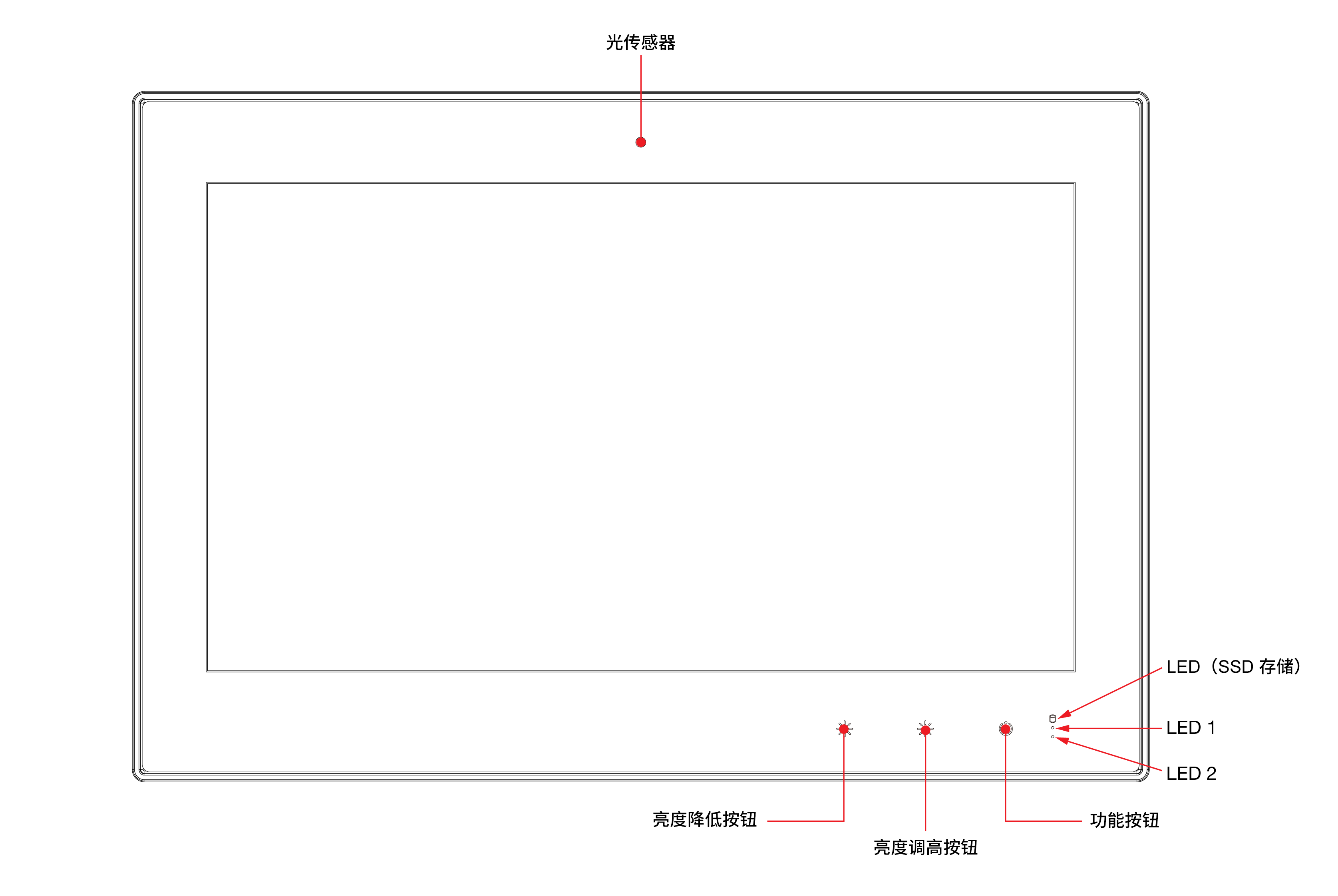 • 內置光傳感器,用于自動亮度控制