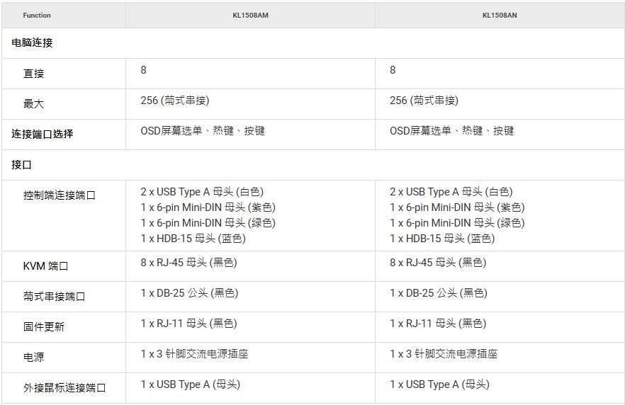 *KL1508A產(chǎn)品本身并不支持Virtual Media功能 (即使搭配支持Virtual Media的KVM電腦端模塊使用)