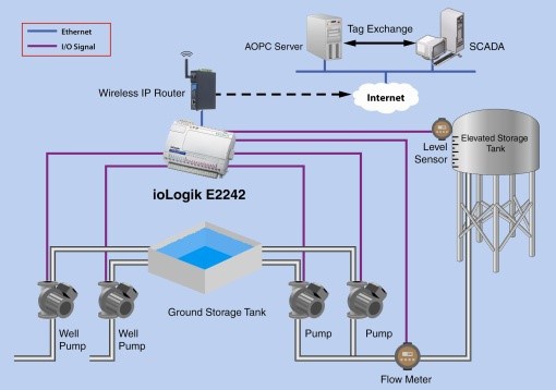 針對(duì)此應(yīng)用,Moxa采用了兩組ioLogick E2242。ioLogik E2242是一款4路模擬輸入及12路數(shù)字輸入/輸出的RTU,為給水泵站提供連接選項(xiàng)。