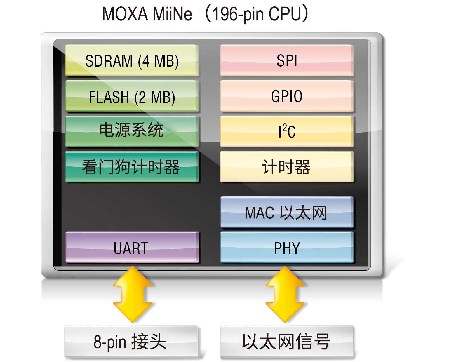 MiiNe 為設(shè)備制造商提供具有競爭力的嵌入式串口聯(lián)網(wǎng)解決方案。MiiNePort E2 采用 MiiNe 作為系統(tǒng)級芯片,是較小的嵌入式設(shè)備聯(lián)網(wǎng)服務(wù)器之一,在市場上同類產(chǎn)品中擁有低功耗。MiiNe 特性包括: