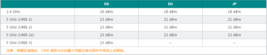 23±1.5 dBm @ 6 至 24 Mbps
