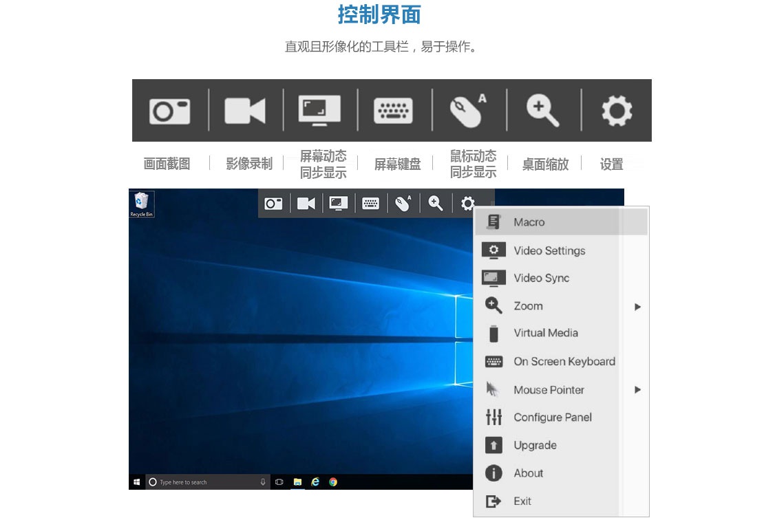 用戶可通過CV211直覺的圖像化用戶界面(GUI)進(jìn)行簡易操作和快速從筆記本端進(jìn)行訪問操作的功能。而且創(chuàng)新的虛擬媒體功能,可讓用戶進(jìn)行檔案管理相關(guān)應(yīng)用、作業(yè)系統(tǒng)修復(fù)、系統(tǒng)診斷測(cè)試,以及軟件安裝等作業(yè)。用戶操作控制視窗也可依據(jù)其連接電腦的顯示畫面分辨率和確切畫面大小自動(dòng)調(diào)整至合適尺寸,或者用戶通過手動(dòng)調(diào)整視窗大小,將視窗調(diào)整為需要的尺寸;如此一來,用戶不需卷動(dòng)屏幕畫面,即可完整瀏覽被操控電腦的全部面。