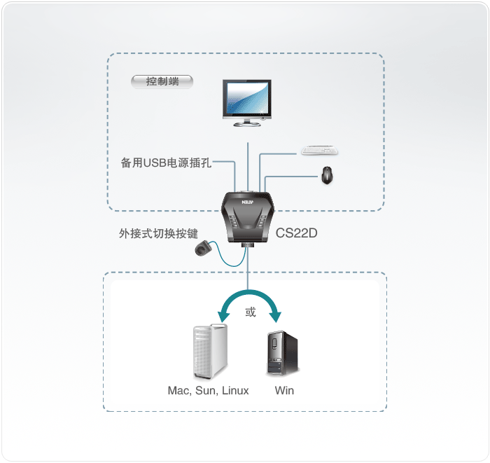 CS22D是一款2端口USB DVI KVM多電腦切換器,用戶可通過(guò)一組USB和DVI控制端(鍵盤、鼠標(biāo)和顯示器)控制兩臺(tái)電腦,并可通過(guò)外接式切換按鍵,簡(jiǎn)單且快速地切換電腦。