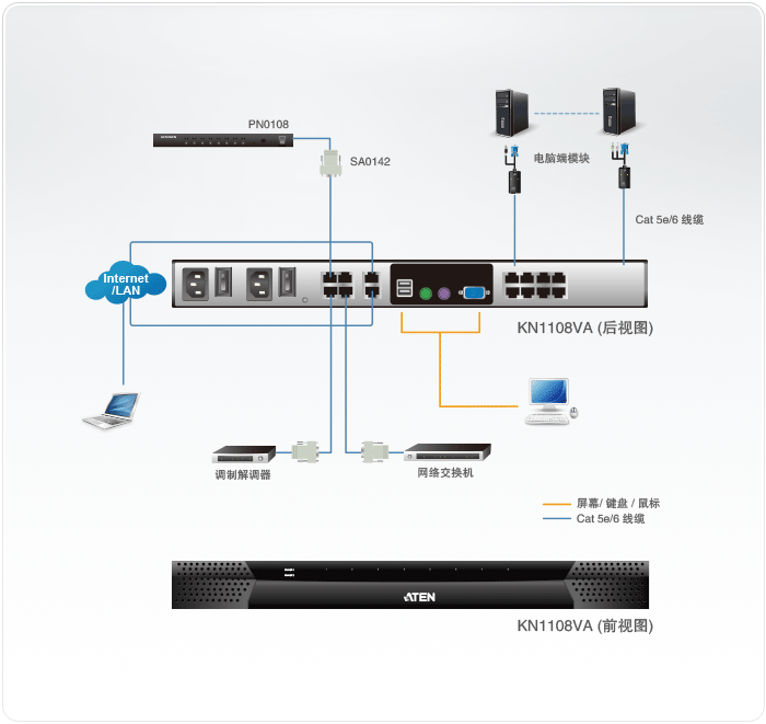 ** 可兼容占口級(jí)聯(lián)的KVM多電腦切換器包括:CS9134、CS9138、CS1308、CS1316、KH1508、KH1508A及KH1516A。