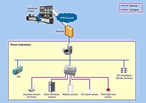 SNMP是實現(xiàn)系統(tǒng)整合的關(guān)鍵因素。SNMP已越來越多的應(yīng)用于工業(yè)自動化系統(tǒng),包括客戶的PAM系統(tǒng)。要搭建一個與PAM系統(tǒng)兼容的報警系統(tǒng),他們采用了Moxa的ioLogik E2214。ioLogik E2214可以實現(xiàn)穩(wěn)定可靠的SNMP轉(zhuǎn)IO傳輸,不僅支持通過SNMP監(jiān)控I/O狀態(tài),更具備內(nèi)部寄存器和用戶自定義SNMP Trap內(nèi)容等功能,這樣大大提高了用戶使用的靈活性。此外ioLogik E2214體積小巧,通過UL508認證,特別適合變電站的惡劣環(huán)境。