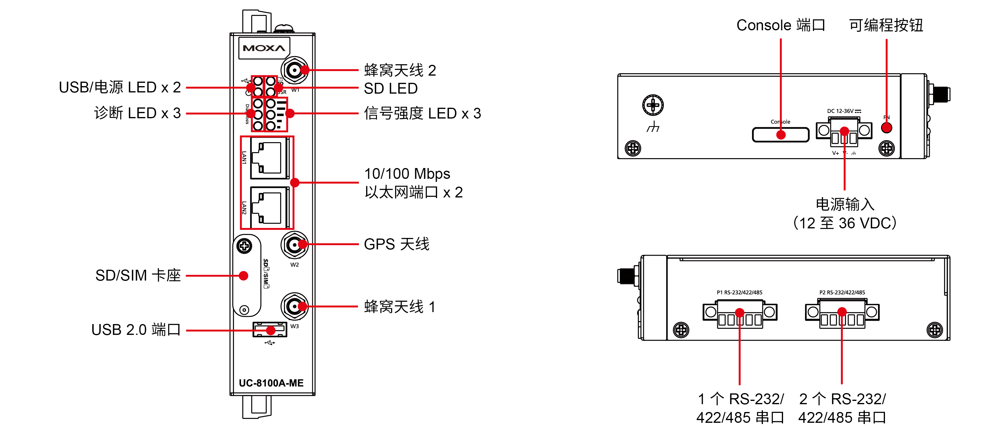 UC-8112A-ME-T-LX-AP:LTE 頻段 1 (2100 MHz)/LTE 頻段 3 (1800 MHz)/LTE 頻段 5 (850 MHz)/LTE 頻段 7 (2600 MHz)/LTE 頻段 8 (900 MHz)/LTE 頻段 28 (700 MHz)