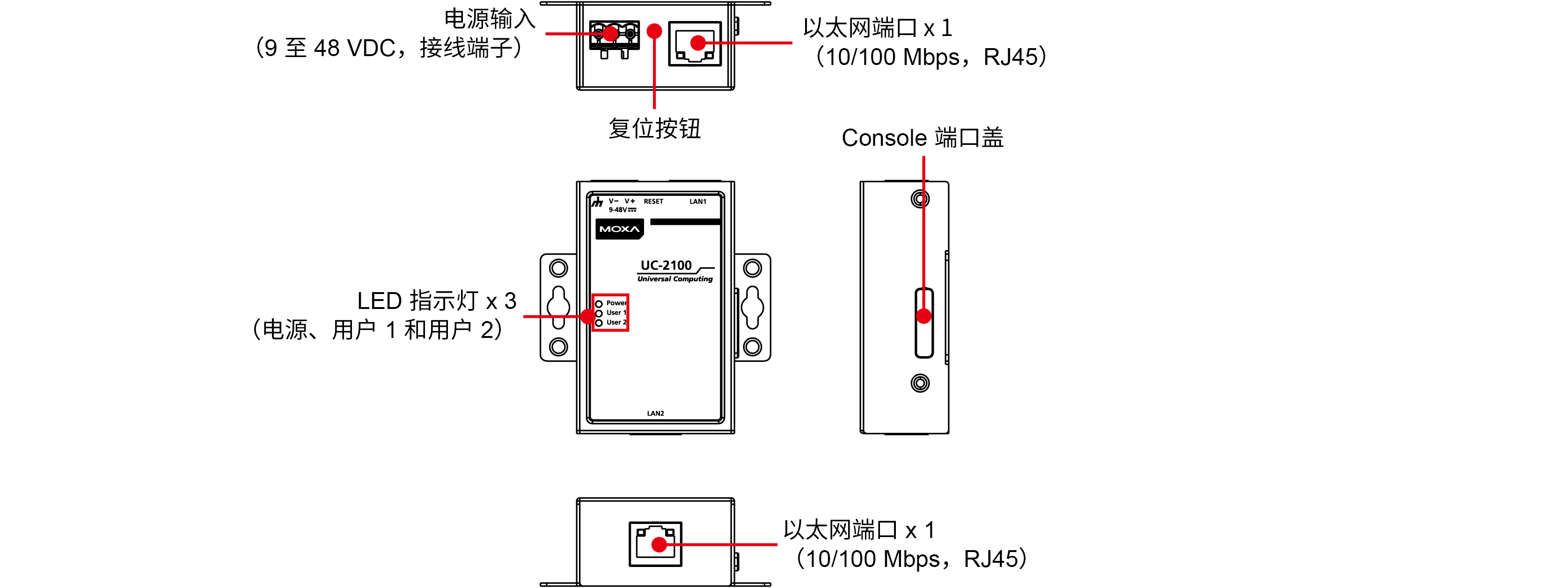 UC-2101-LX:自適應(yīng) 10/100 Mbps 端口(RJ45 接頭)x 1