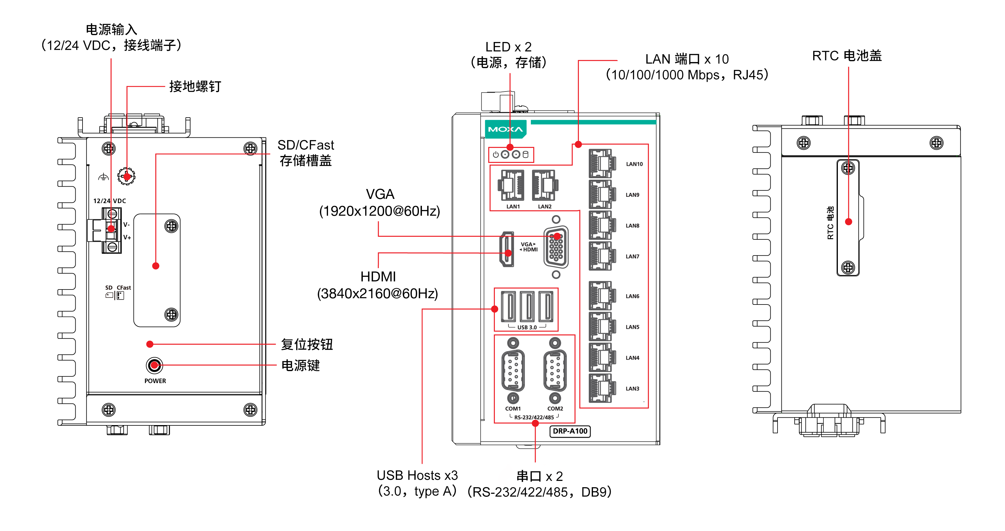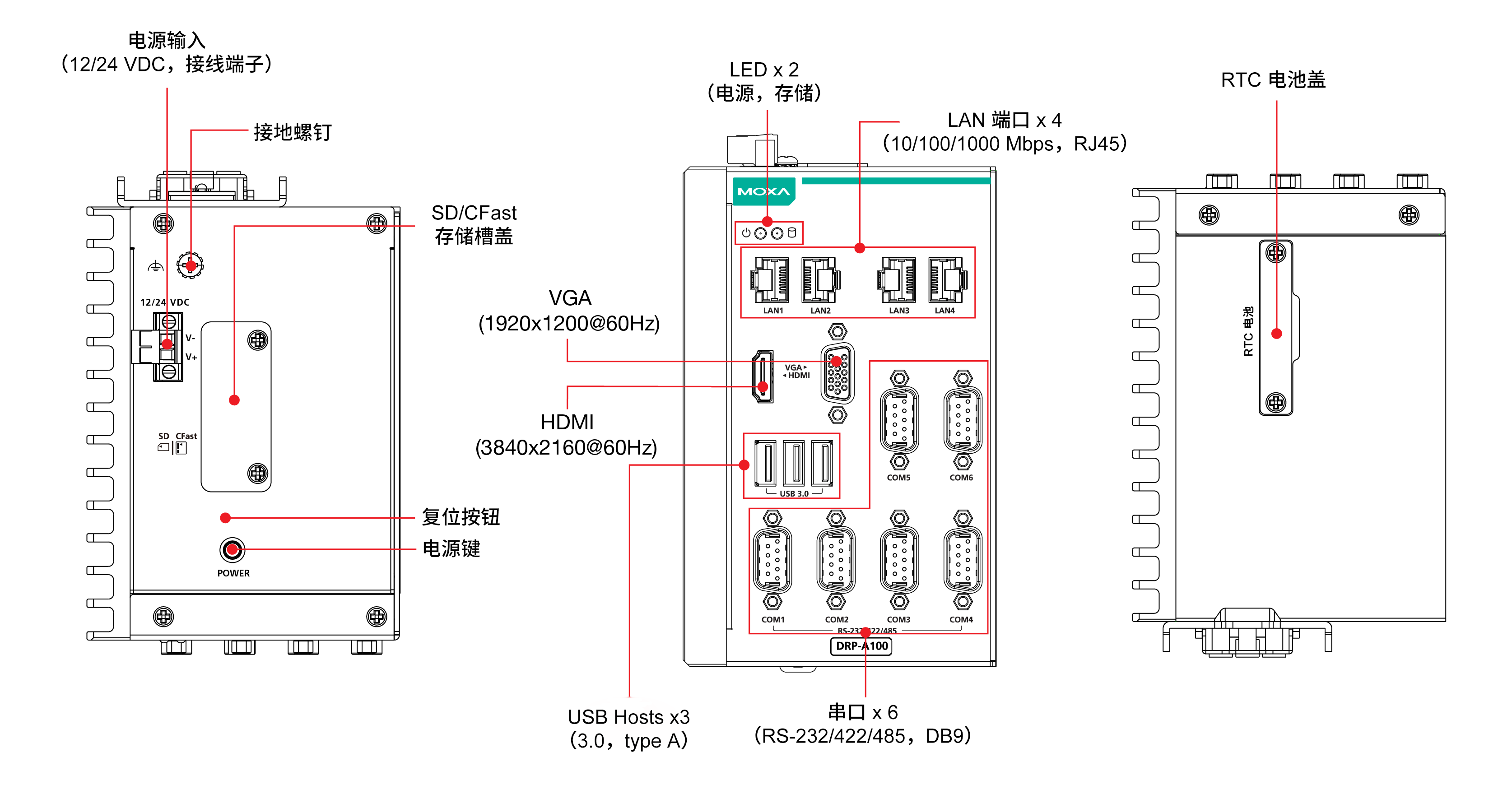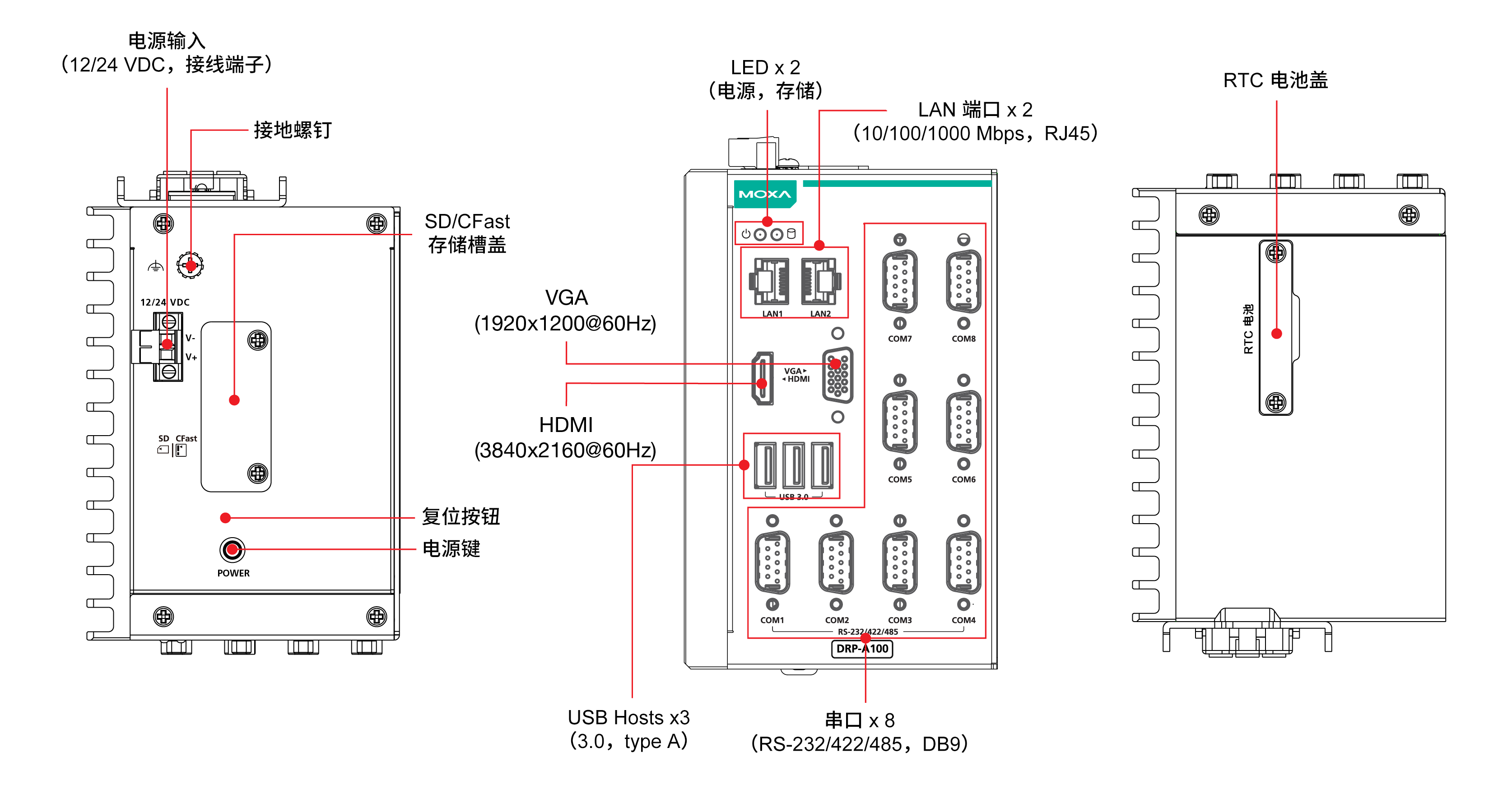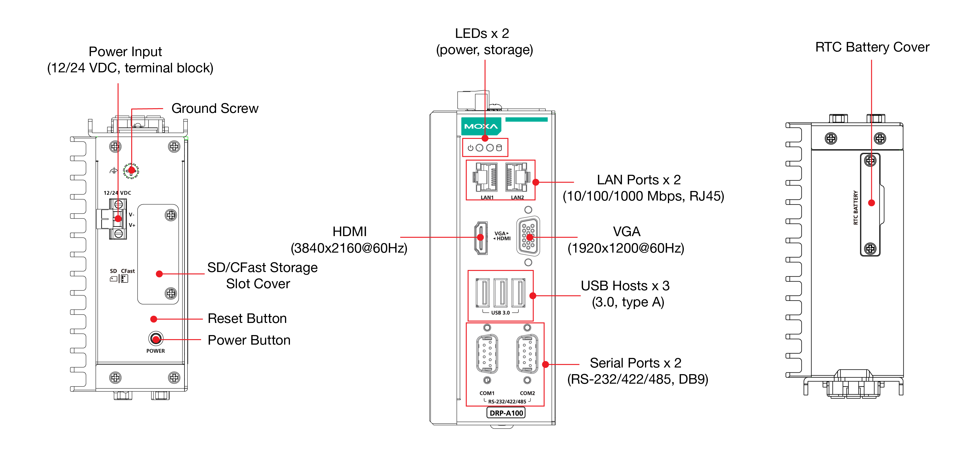 DRP-A100 系列導(dǎo)軌式計(jì)算機(jī)采用 Intel Atom? x6211E 雙核 1.30 GHz 或 Intel Atom? x6425E 四核 2.0 GHz 處理器。這些計(jì)算機(jī)配備了豐富的接口選項(xiàng),其中包括多達(dá) 8 個(gè)軟件可選的 RS-232/422/485 串口,或多達(dá) 10 個(gè)千兆以太網(wǎng)端口。通信接口位于產(chǎn)品的前側(cè),便于工業(yè)應(yīng)用的訪問(wèn)和擴(kuò)展。雙存儲(chǔ)設(shè)計(jì),包括 CFast 和 SD 插槽,方便存儲(chǔ)擴(kuò)展。獨(dú)特的電池扣蓋將電池固定在適當(dāng)?shù)奈恢?,并確保在所有操作環(huán)境下的穩(wěn)定性,而電池槽的活板門設(shè)計(jì)使得無(wú)需拆卸電池蓋即可輕松更換電池。DRP-A100 系列是一款可靠、耐用、多功能且用戶友好的工業(yè)應(yīng)用計(jì)算平臺(tái)。