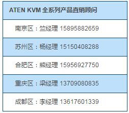 南京明高公司為了滿足市場(chǎng)需求,更好的服務(wù)廣大客戶,自8月份開(kāi)始,專設(shè)ATEN KVM全系列產(chǎn)品直銷(xiāo)顧問(wèn),聯(lián)系方式如下: