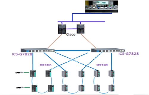 Moxa 突破性靈活的Turbo Chain? 冗余技術(shù),將系統(tǒng)建造者從傳統(tǒng)環(huán)形架構(gòu)的成本限制中徹底解放出來(lái)。有了Turbo Chain,以太網(wǎng)交換機(jī)可以把現(xiàn)場(chǎng)交換機(jī)以菊花鏈的方式連接到一起,每條“鏈“ 連接到控制中心并通過(guò)一個(gè)鏈?zhǔn)捉粨Q機(jī)和一個(gè)鏈尾交換機(jī)將網(wǎng)絡(luò)拓寬。我們不再需要環(huán)間耦合交換機(jī),便于節(jié)省整體預(yù)算。