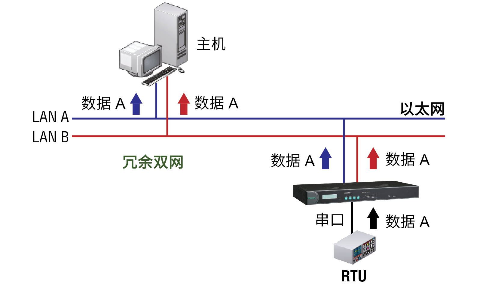 • 雙網(wǎng)絡(luò)連接運行時,可啟用冗余串口功能