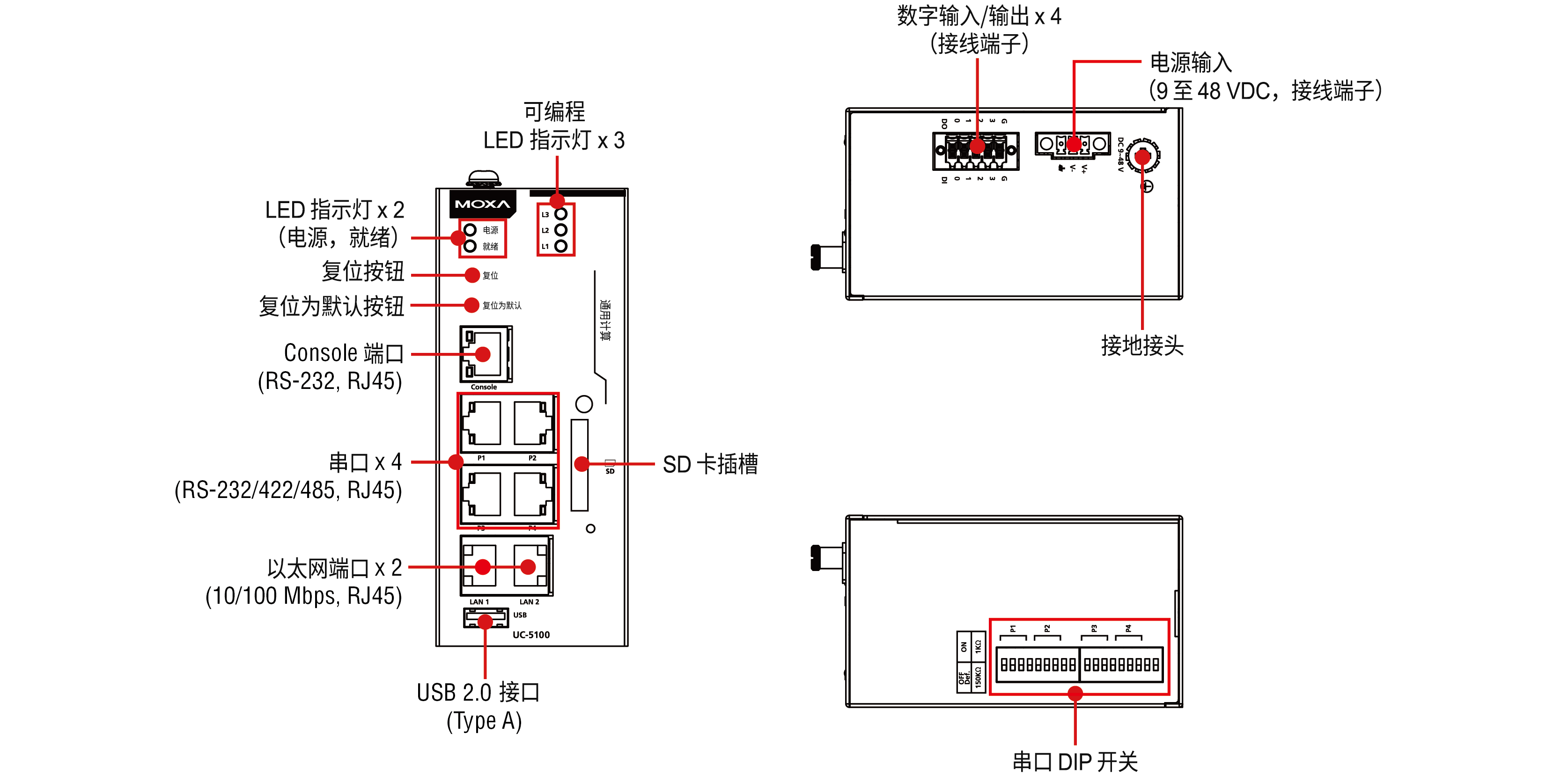 • 4個(gè)RS-232/422/485端口,軟件可選,支持所有信號(hào)