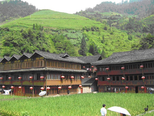 經(jīng)過一個晚上的休整,大家興致高昂地向我們的第一個景點出發(fā)----龍勝風(fēng)景區(qū)。從桂林市區(qū)出來經(jīng)過一個小時的公路和一個半小時的山路我們終于到了龍勝的黃落瑤寨。