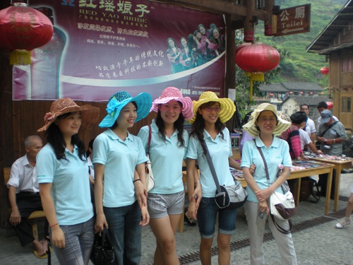 我們在導(dǎo)游的帶領(lǐng)下參觀這座寨子,MM們一時興起,來了一個草帽大集合