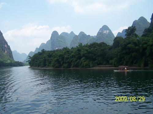 29號我們搭上游輪,順著漓江而下,游覽這著名的百里畫廊。古今中外,不知多少騷人墨客為漓江的綺麗風(fēng)光寫下膾炙人口的優(yōu)美詩文。唐代大詩人韓愈曾以“江作青羅帶,山如碧玉簪”的詩句來贊美這條如詩似畫的漓江。