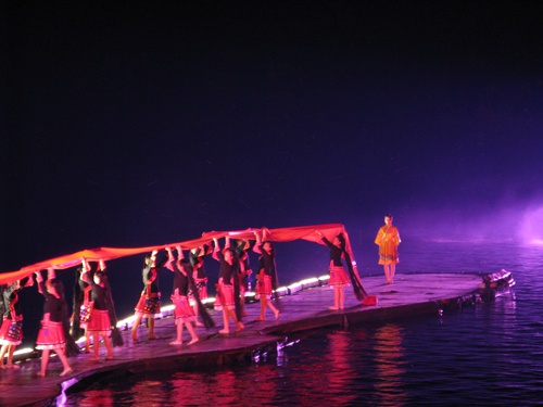晚上公司還特地為我們安排去看印象`劉三姐的演出,讓我們感受了一把當(dāng)?shù)厣贁?shù)民族的山水生活