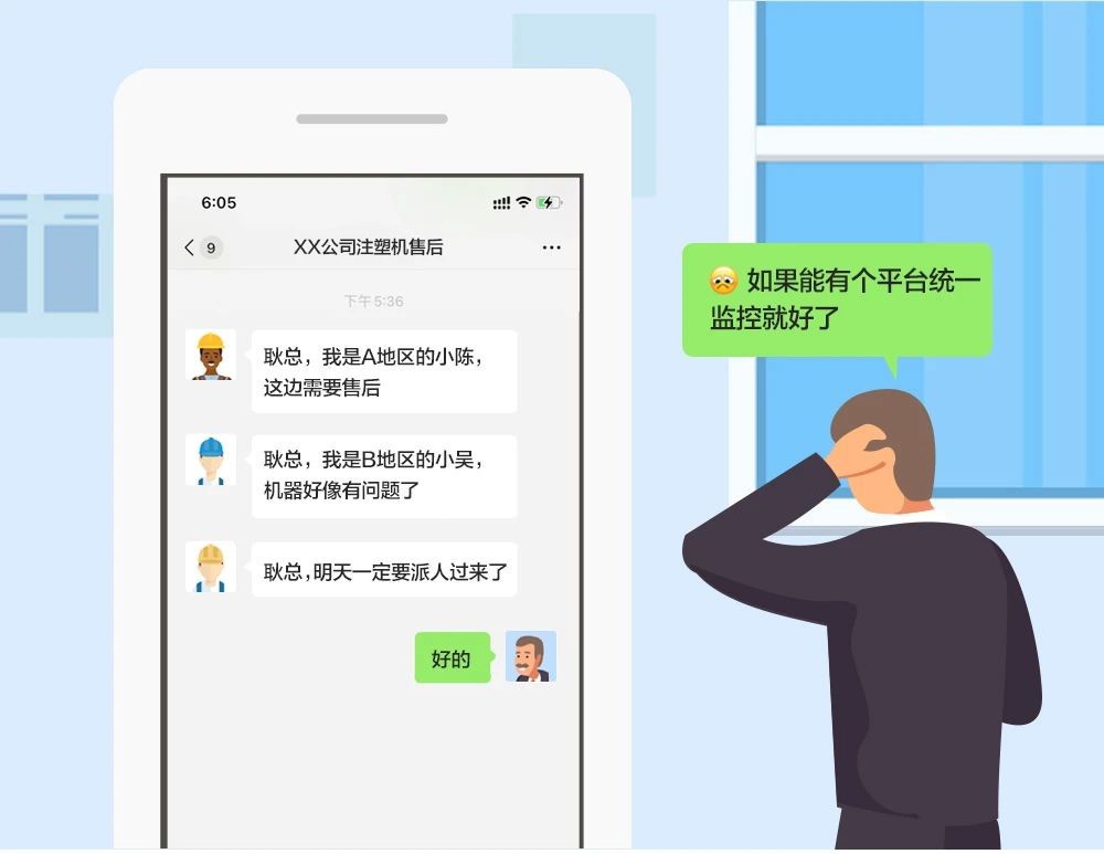 傳統(tǒng)的注塑機只能通過本地操作開關(guān)來控制,沒有集中的管理和監(jiān)控。當故障發(fā)生時才會上報注塑機廠商,注塑機廠商售后工程師需要在first時間到達故障現(xiàn)場,消耗大量人力,物力。同時由于注塑機廠商生產(chǎn)的注塑機遍布whole country各地各個行業(yè),位置比較分散,導(dǎo)致一些機器故障無法及時檢修,極大的影響客戶的生產(chǎn)效率。